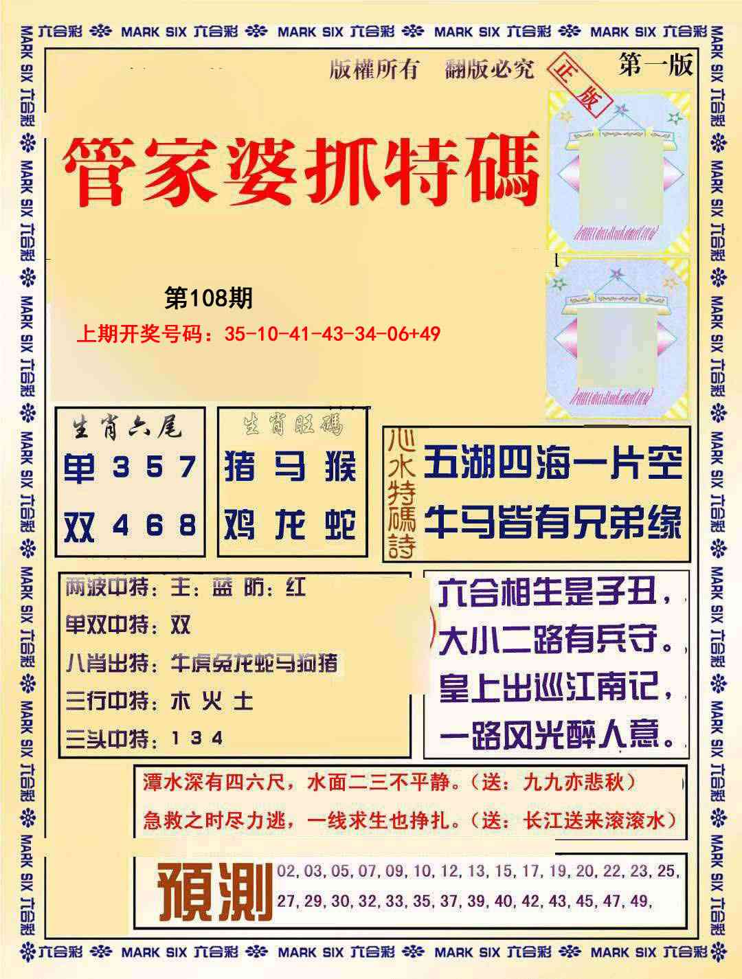 | 107期 | 【家禽+猴虎】 | 开?00准 |