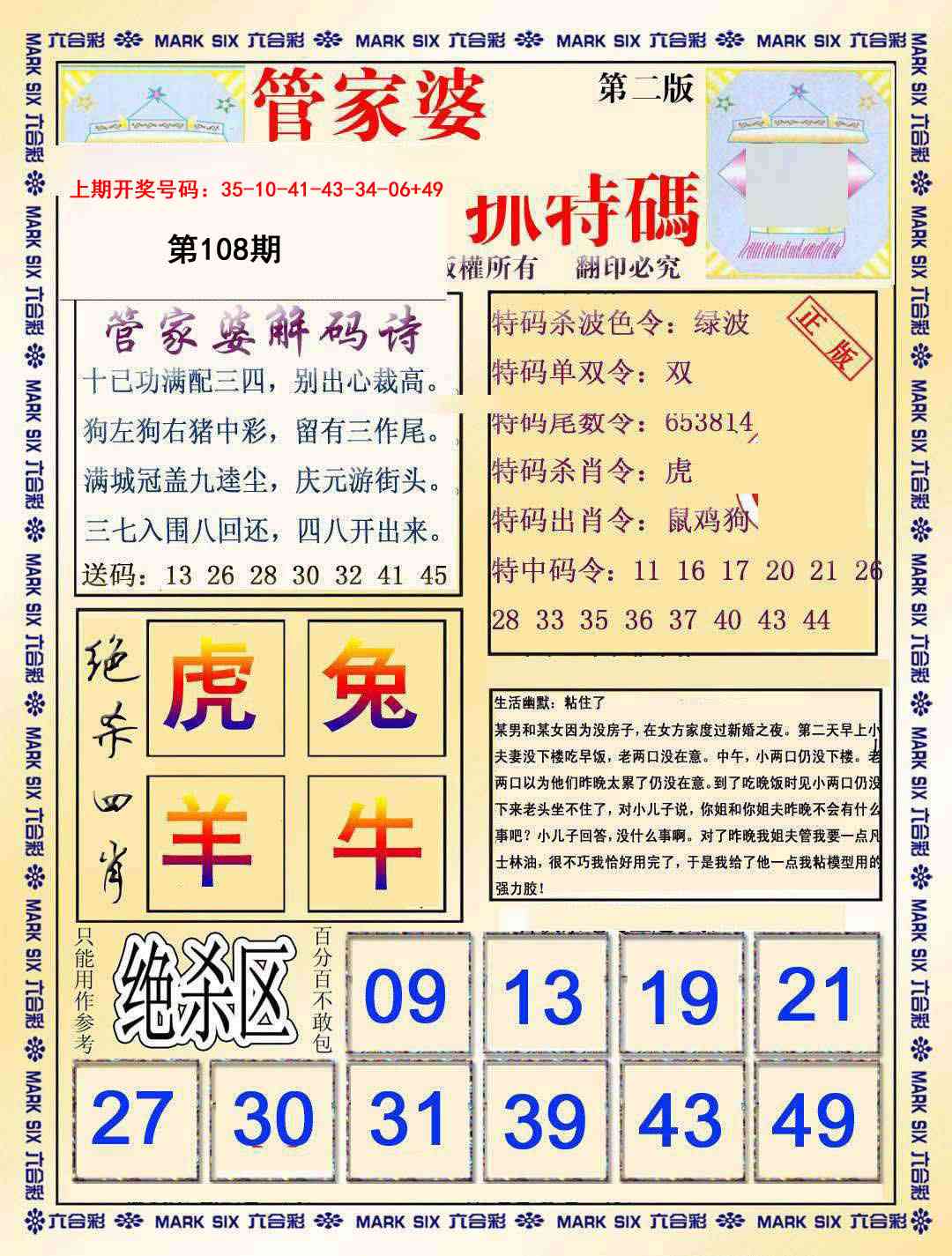 | 106期 | 【家禽+猴虎】 | 开鸡22准 |